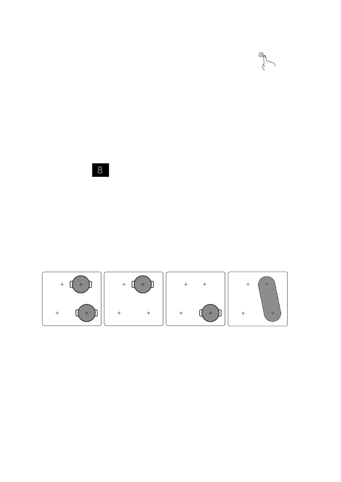 • The function is switched on when the pot covers the centre of both cooking zones.