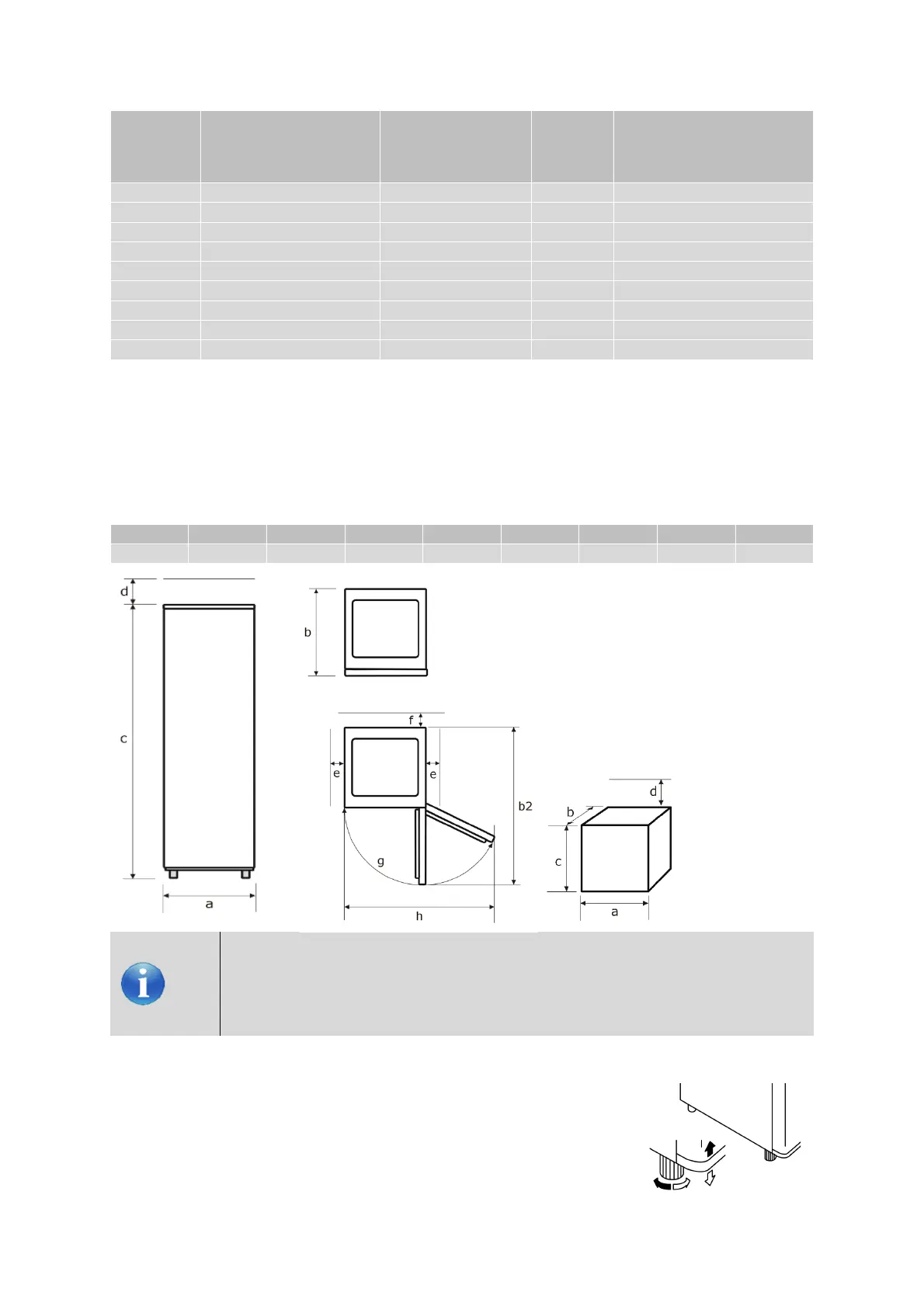 Energieverbrauch und die Kühlleistung (je nach Modell). Unbedingt die Mindestabstände