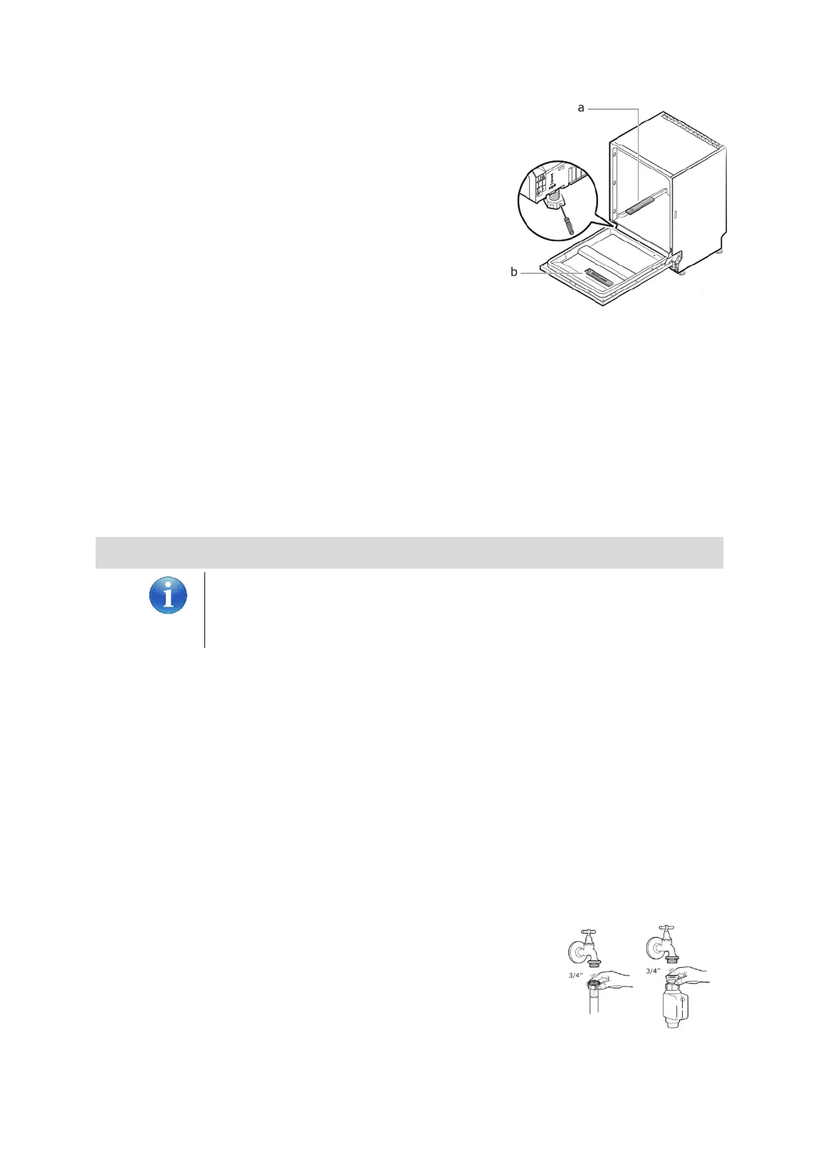 1. Connect the water inlet hose to the ¾” threaded