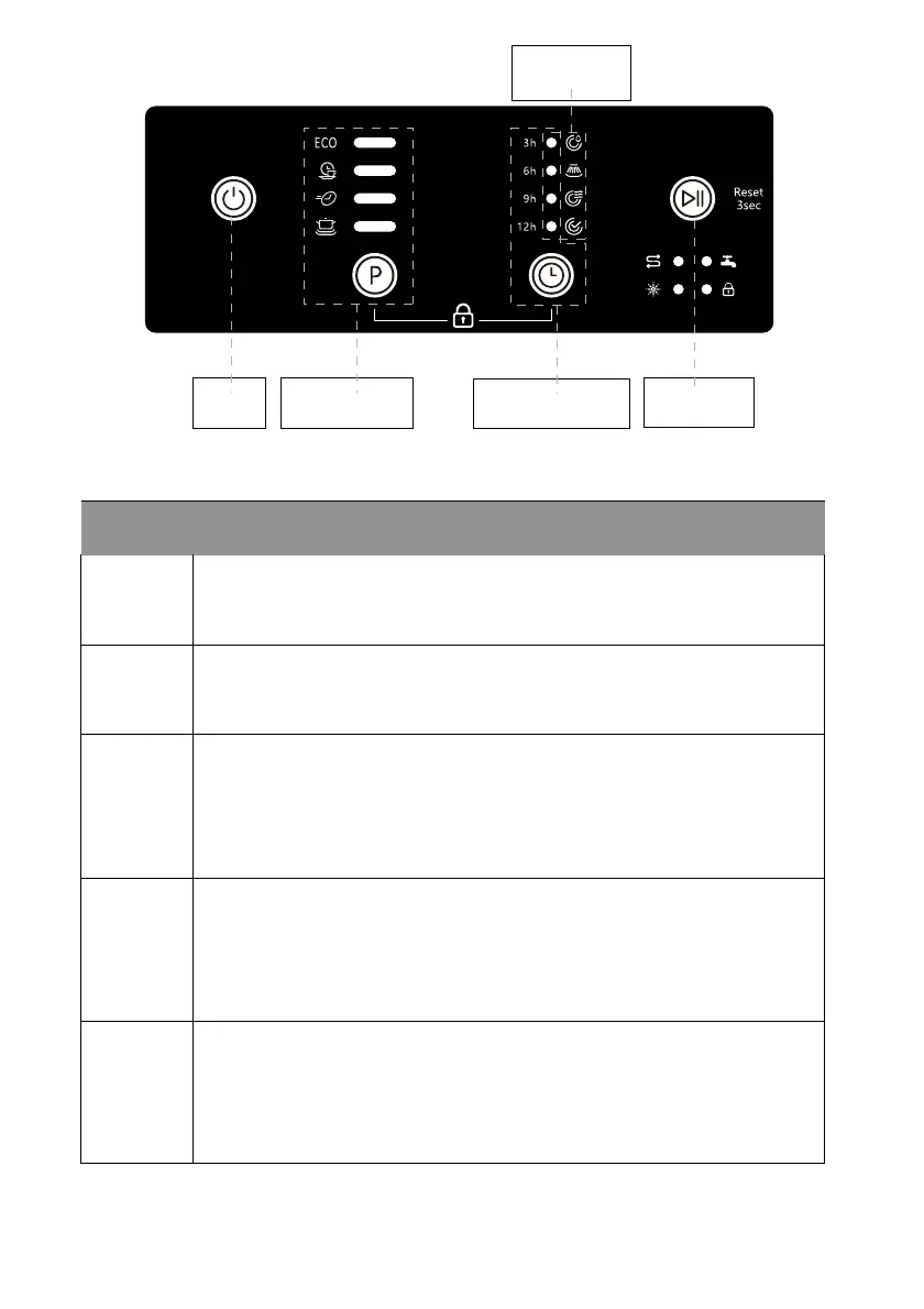 Aan/Uit Druk op deze toets om de vaatwasser aan of uit te zetten.