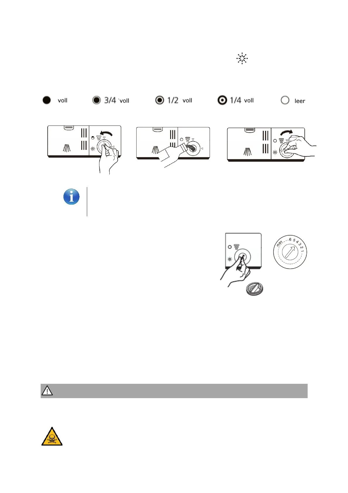 Der Klarspülbehälter hat sechs bzw. vier Einstellungen.