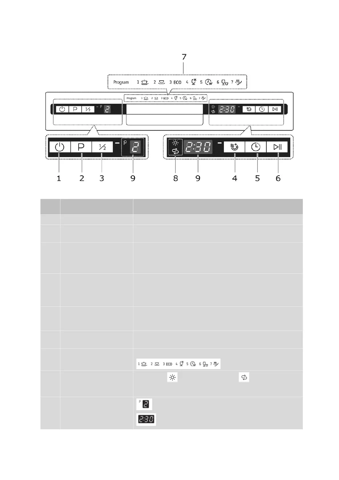 Spülprogramm 1 bis 7 auswählen, Anzeige des