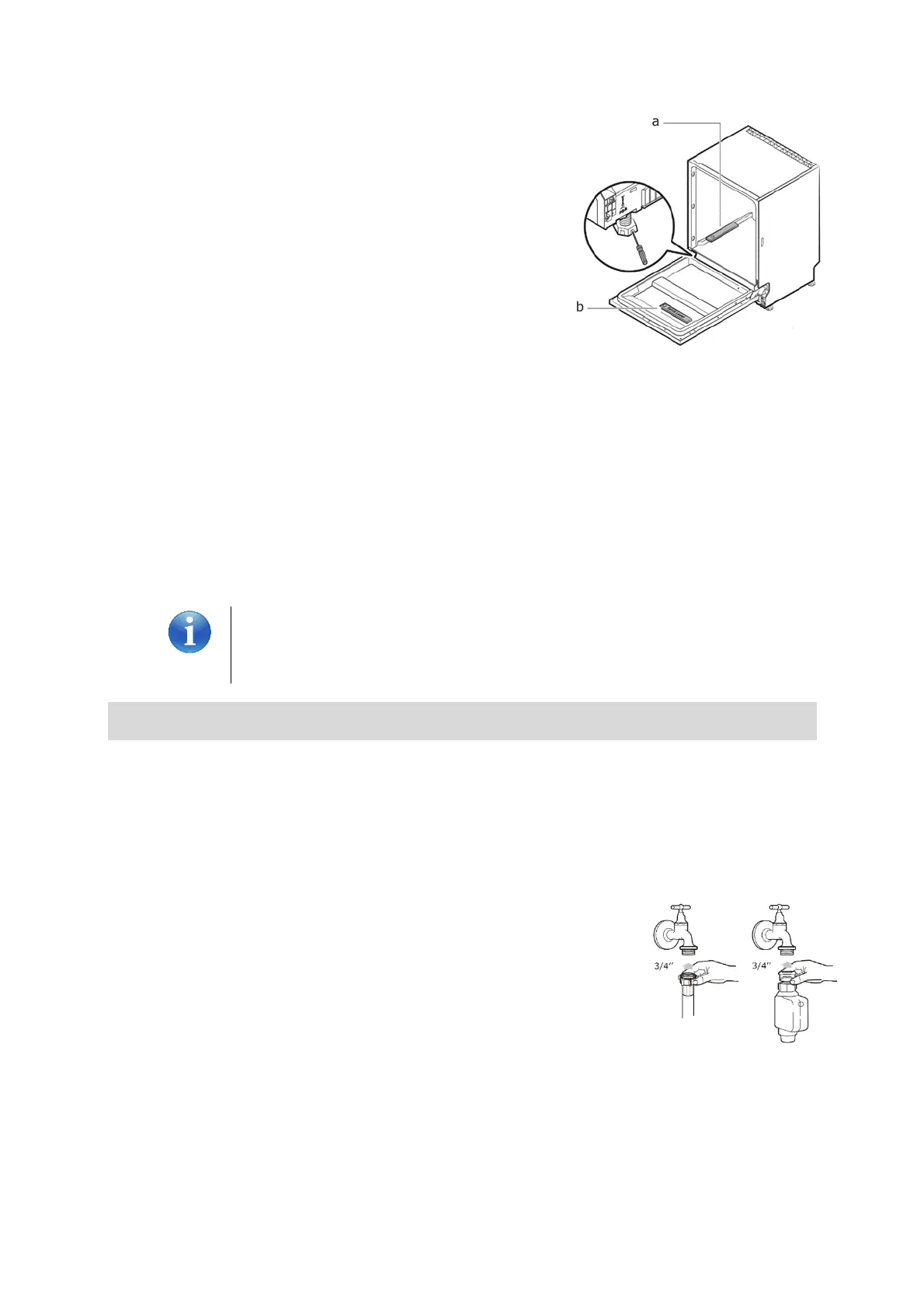 1. Connect the water inlet hose to the ¾” threaded