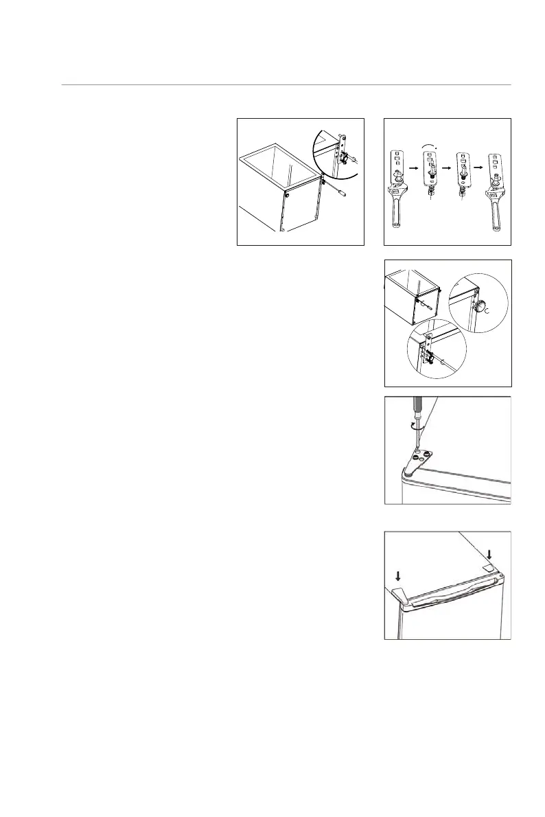 + Monteer de beugel op de onderste scharnierpen. Schroef de beide