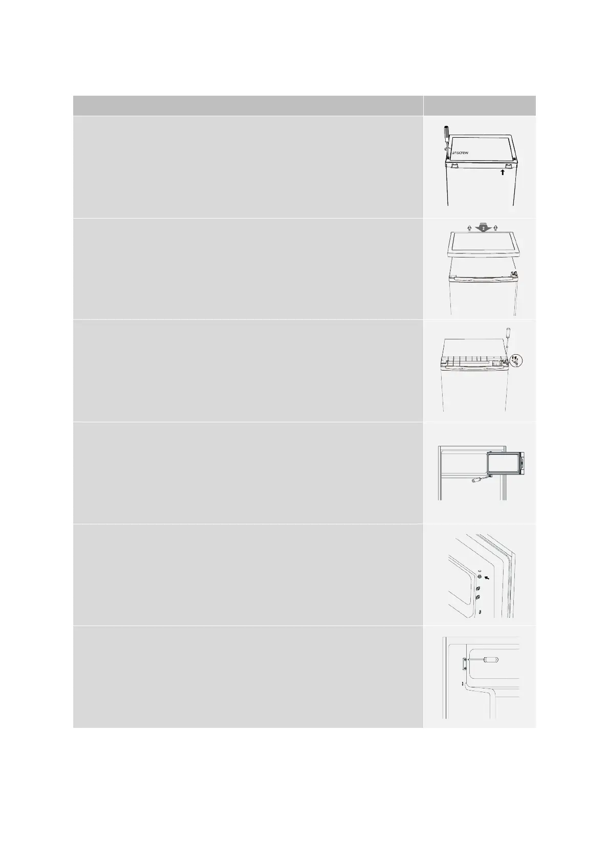7. Open the freezer compartment door and unscrew the