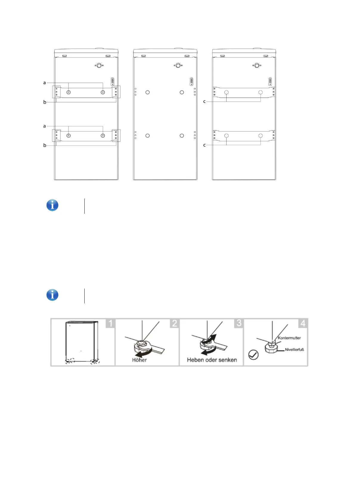 2. Das Gerät mit einer Wasserwaage ausrichten, indem man die Kontermuttern