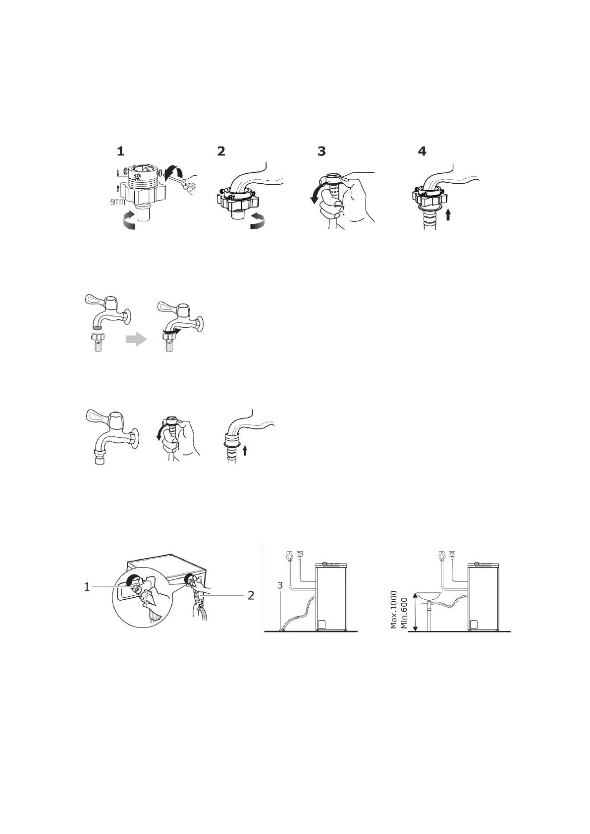 Anschluss an einem normalen Wasserhahn (Wasserhahn: ¾“ Schlauchverschraubung)