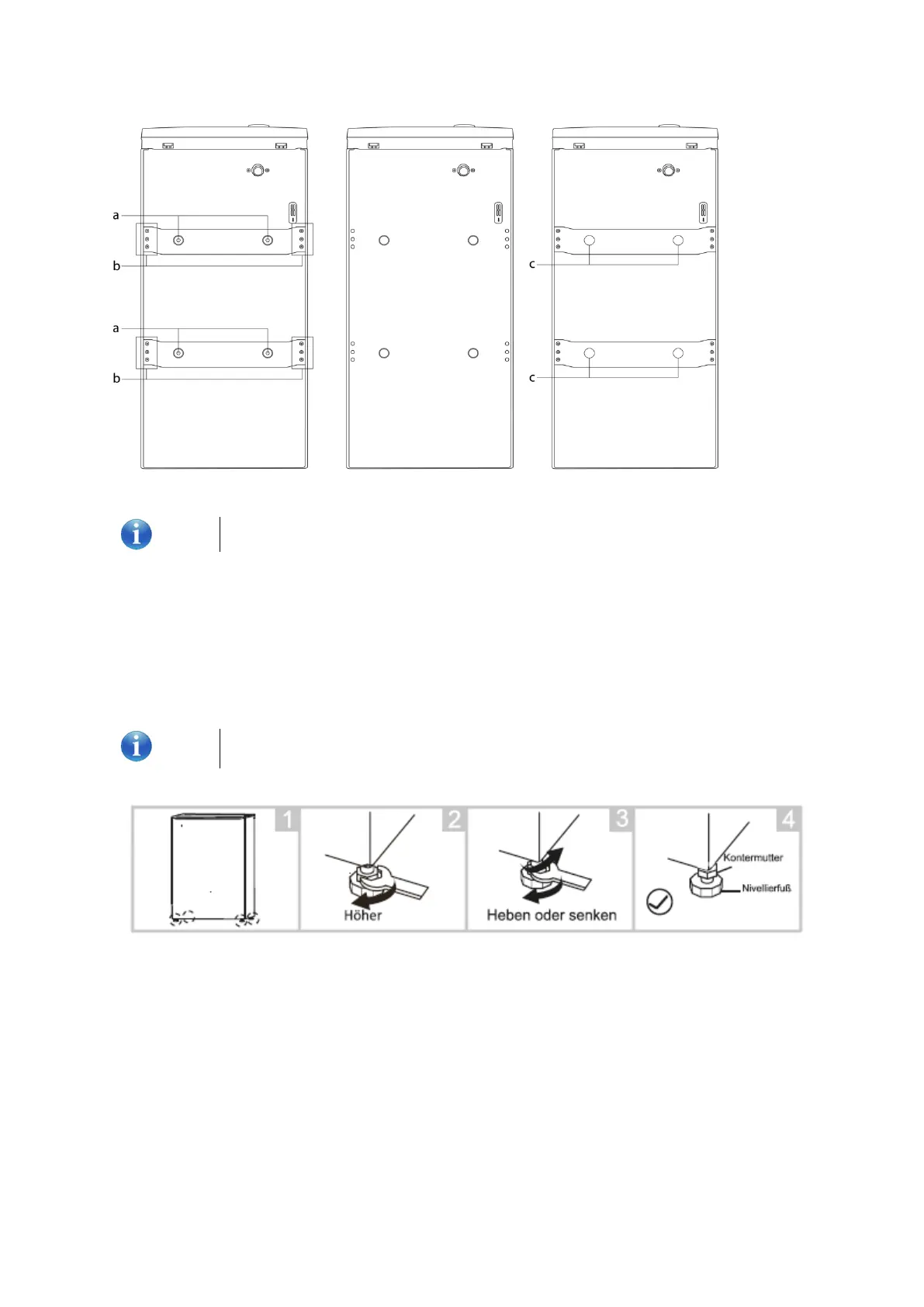 3. Hold the levelling feet firmly and tighten the lock nuts of the four levelling feet