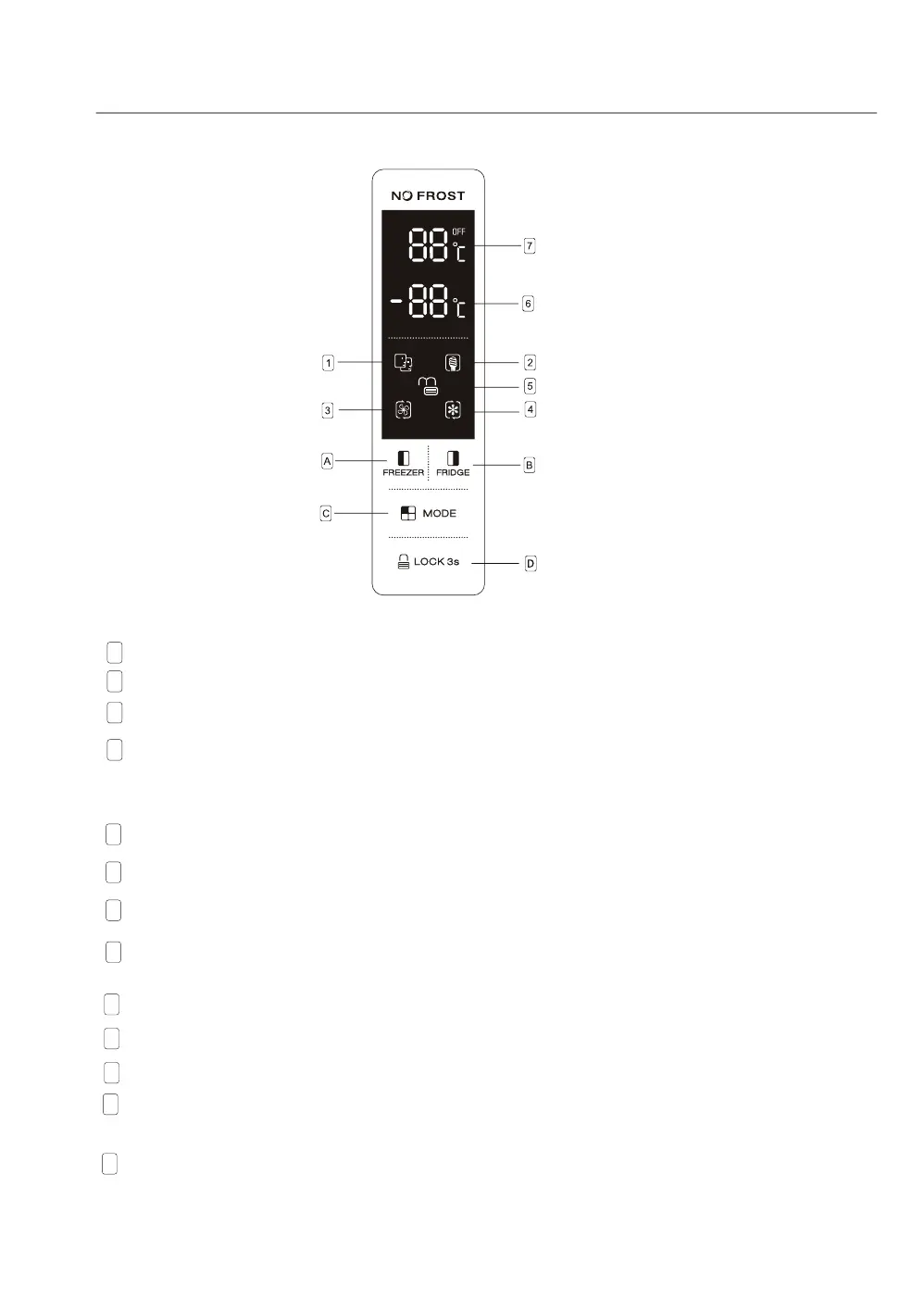 Druk hierop om de temperatuur van het vriesgedeelte (links) aan te passen van -14ºC tot -22ºC.