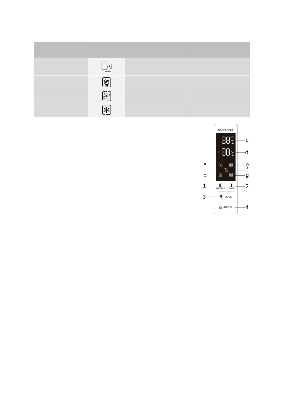 à LED (g) goes out. The appliance returns to the previous temperature setting.