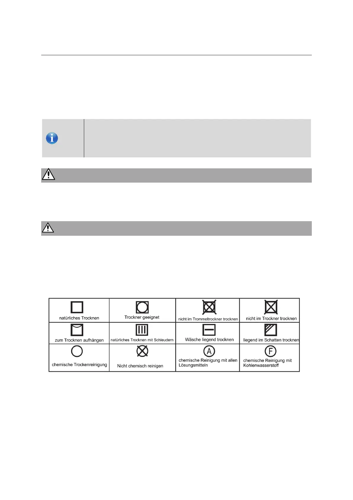➢ Keine Produkte mit Gummi-, Latex- oder Schaumgummianteilen trocknen.