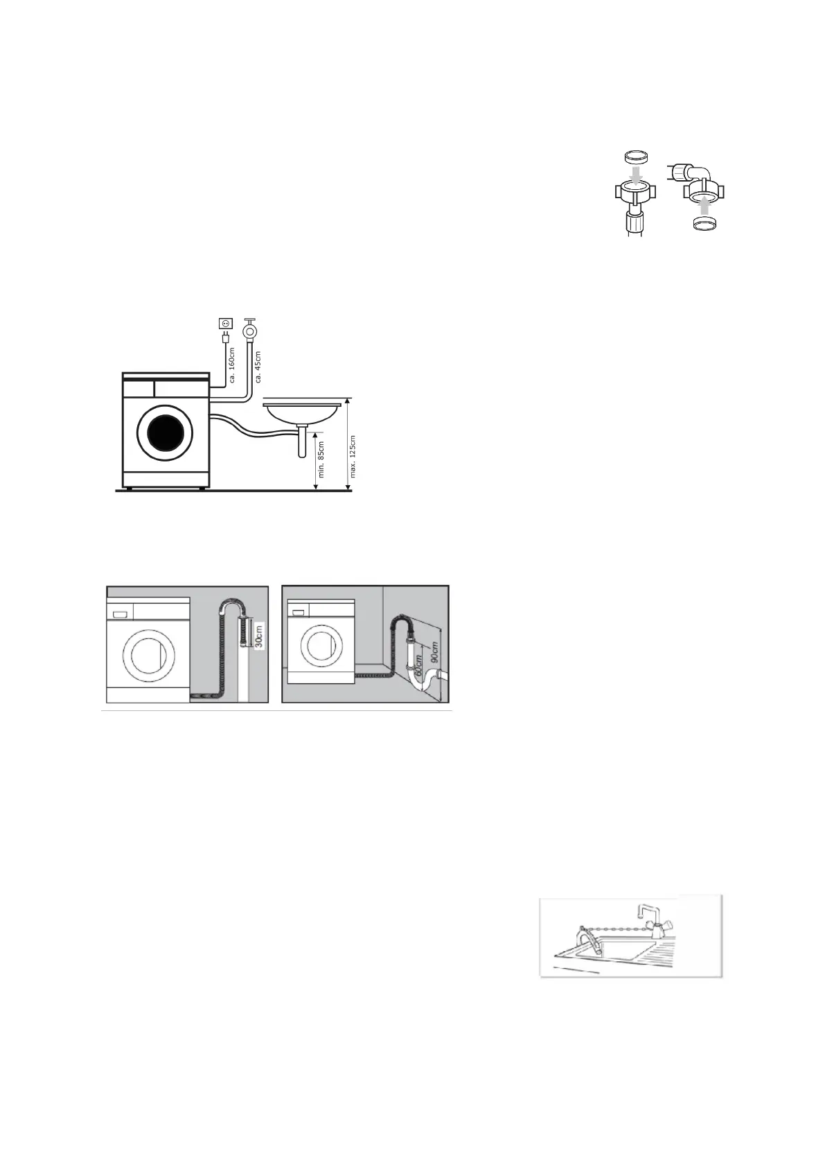 Den Ablaufschlauch mit dem Krümmer in Position bringen.
