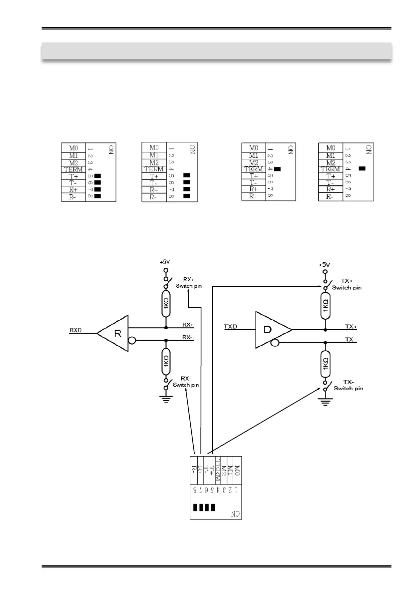 Resistoren für RS-422, RS-485 2-Draht und RS-485 4-Draht Mode: