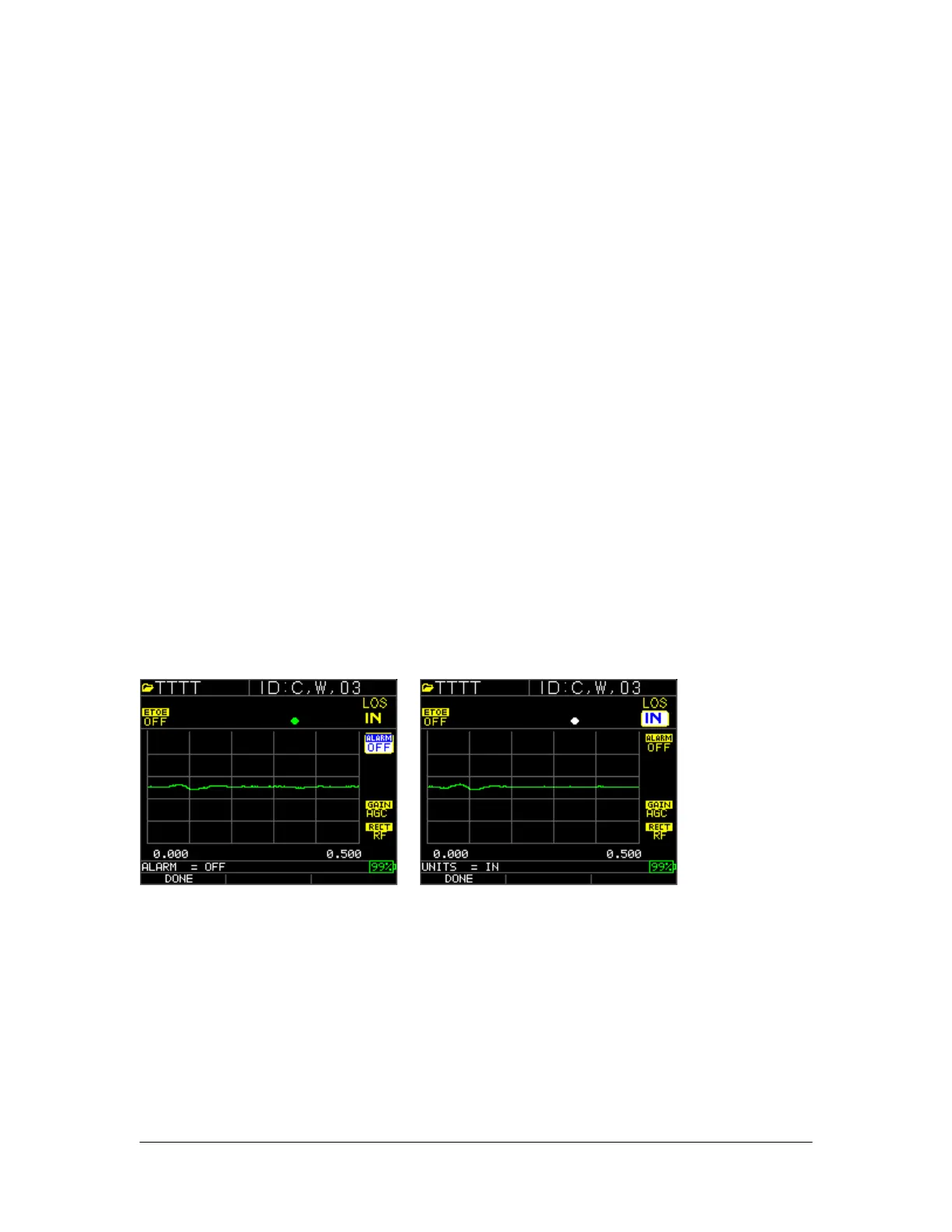 following parameters while in A-Scan: