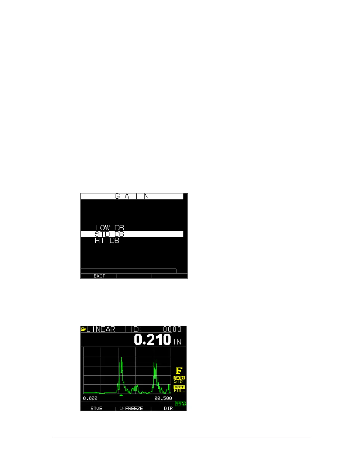 waveform gauges from the live A-Scan. To adjust gain during a live A-Scan, press the