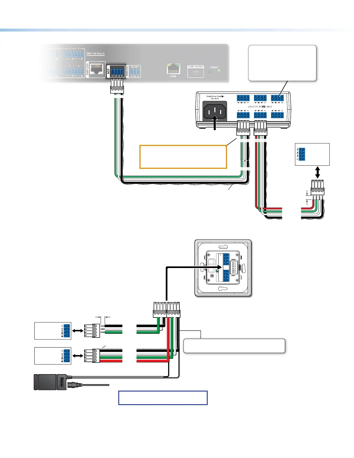 Figure 5. Cabling ACP Panels with an Extron 12 VDC Power Supply
