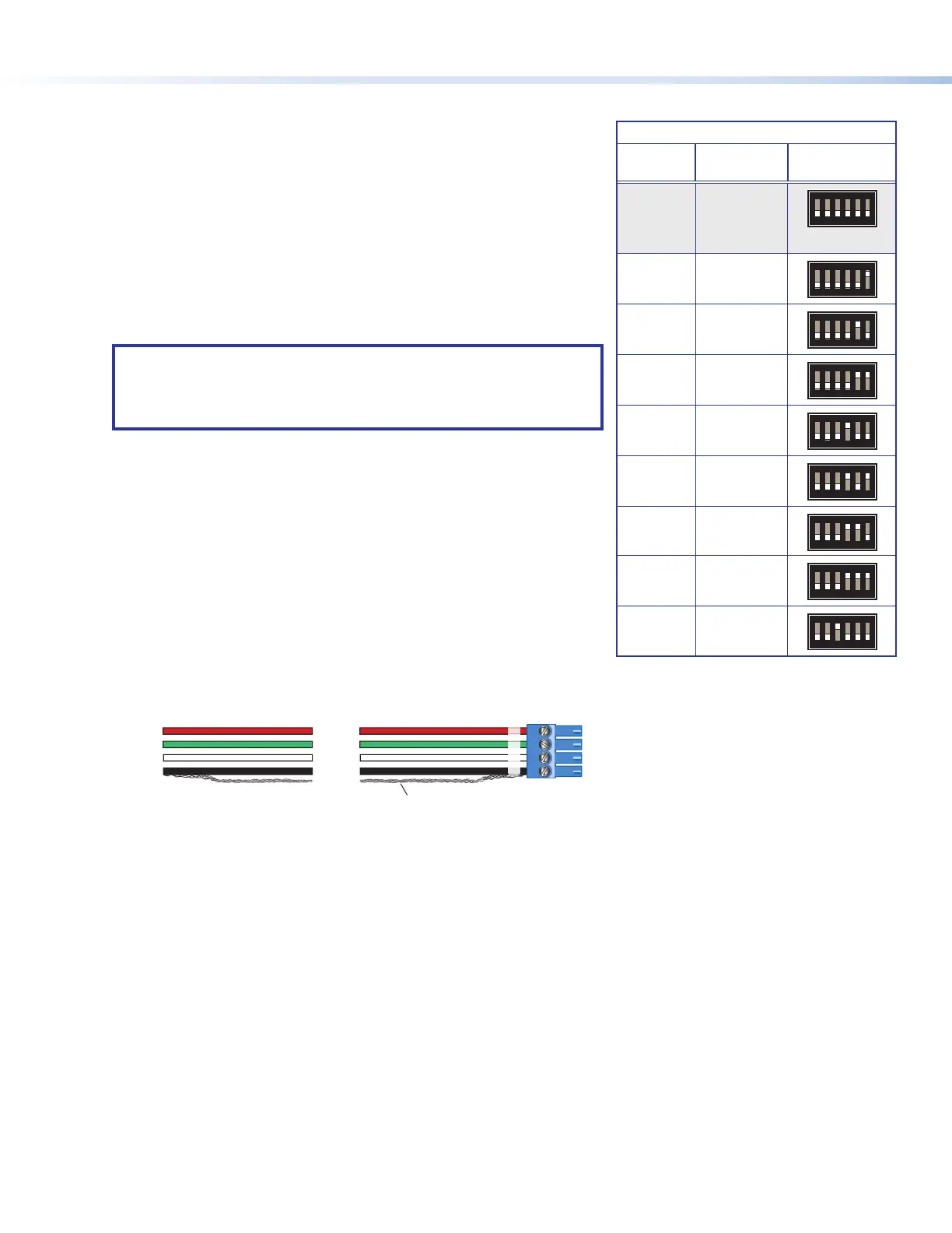 models. Connect a 4-pole captive screw connector to each end of the cable,