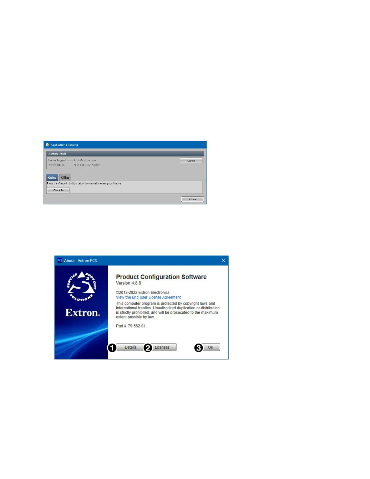 1. From the Software list, select About Extron PCS. The About - Extron PCS dialog box opens.