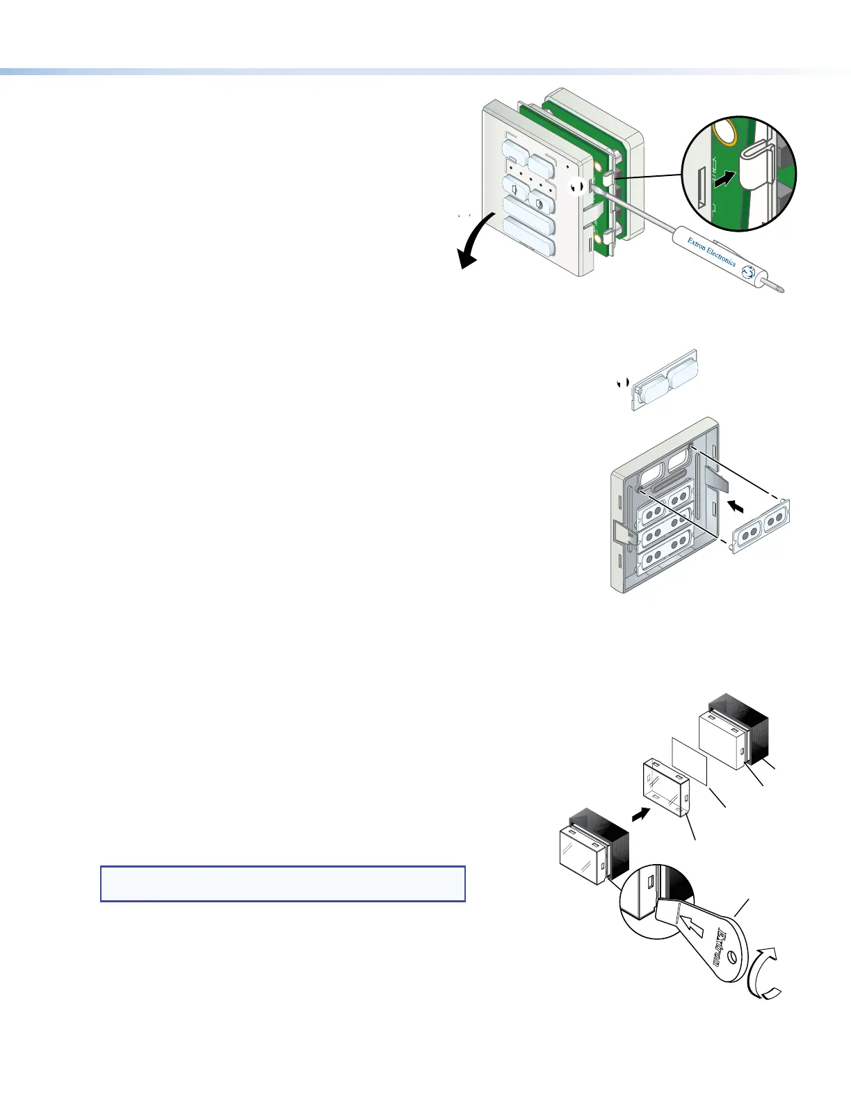 end of the provided Extron removal tool into the corner notch and gently