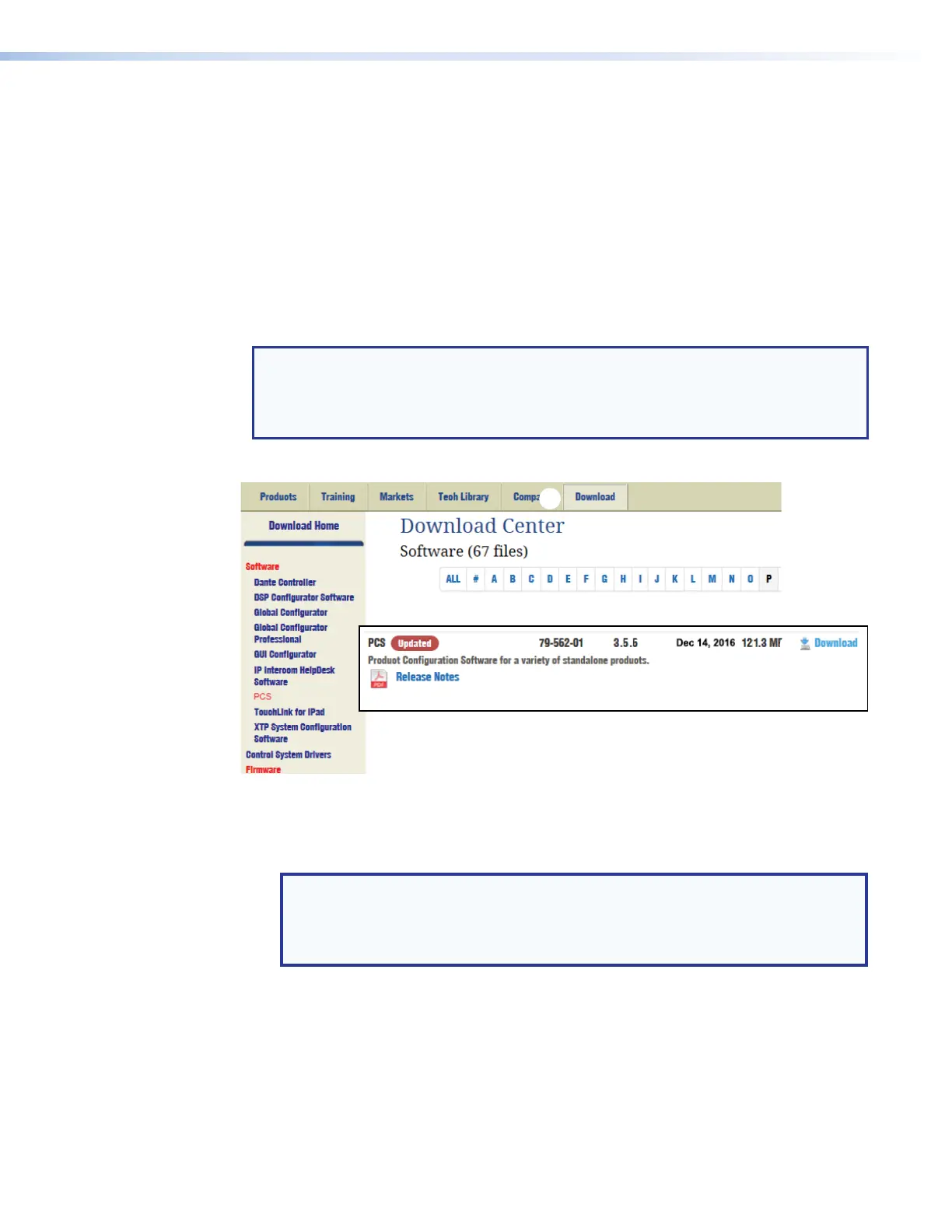 The Product Configuration Software, version 3.5.6 or newer, and Firmware Loader are available