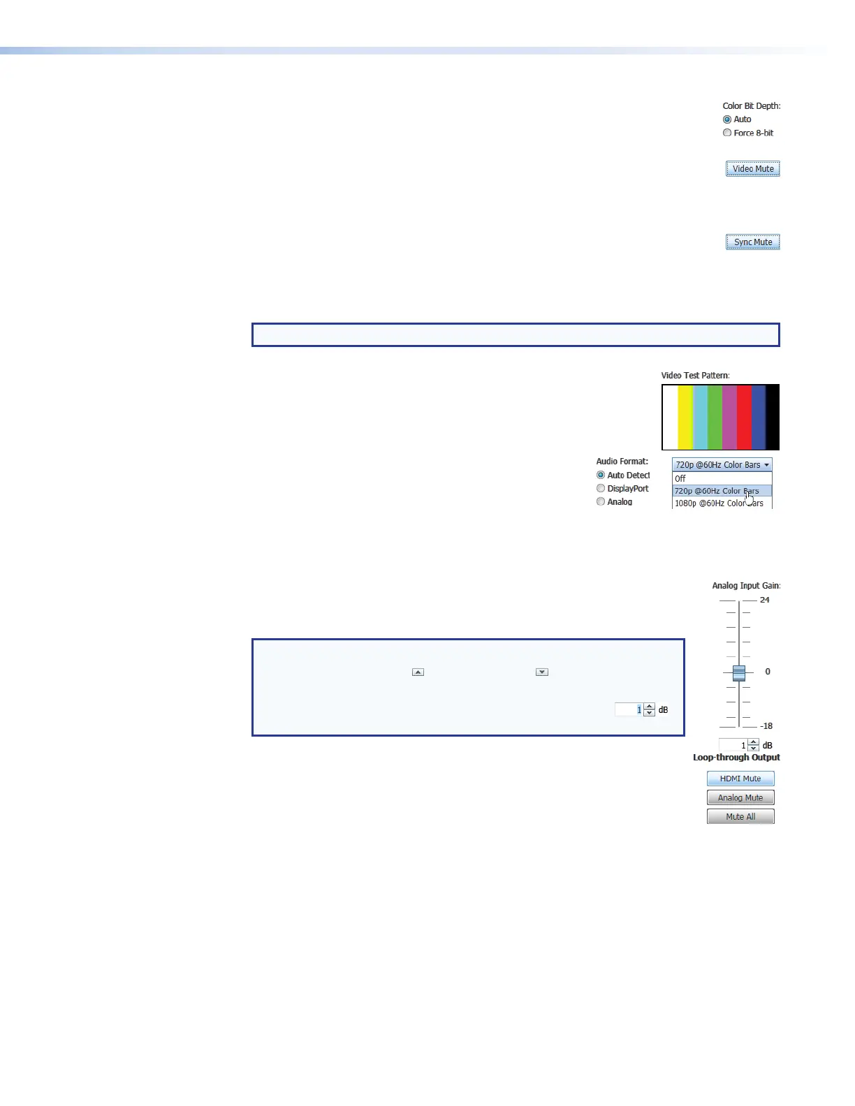 HDMI Mute — Mute the signal on the Loop-through HDMI Output port.