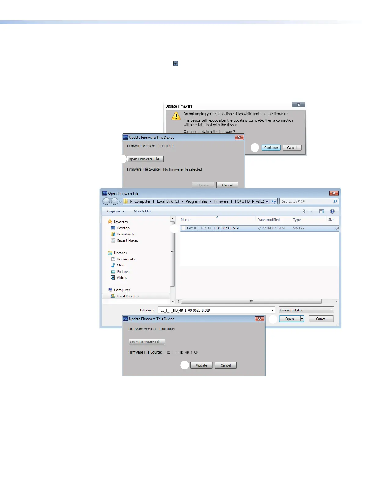 and calls the Firmware Loader utility in the background. The Update Firmware dialog