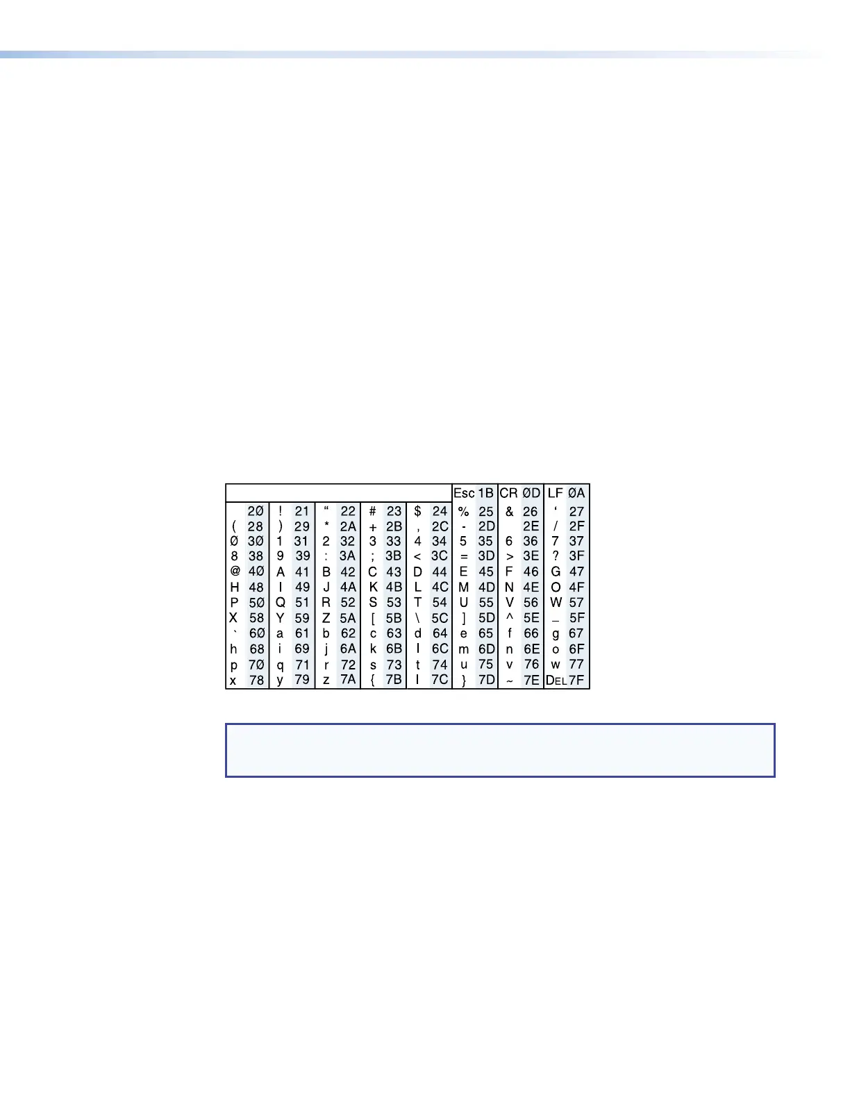 hexadecimal equivalent of their ASCII value. For convenience, the table below shows the