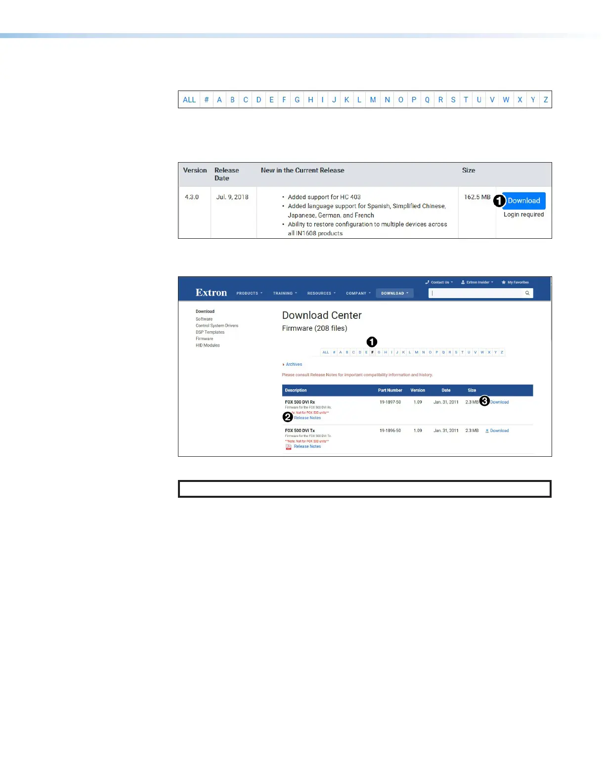 Figure 20. Firmware Page with Alphabetic Navigation Bar