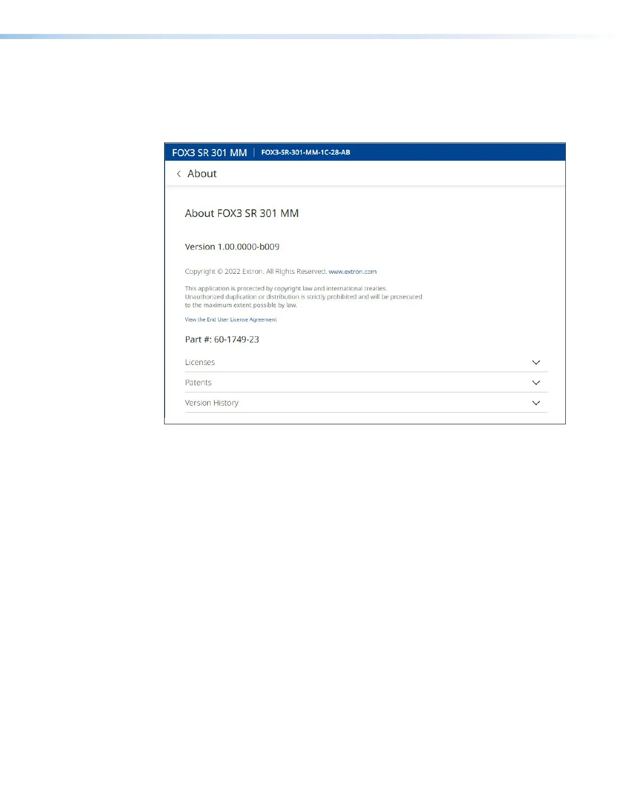 version, copyright, part number, licenses, patents and web page version. Click on the View
