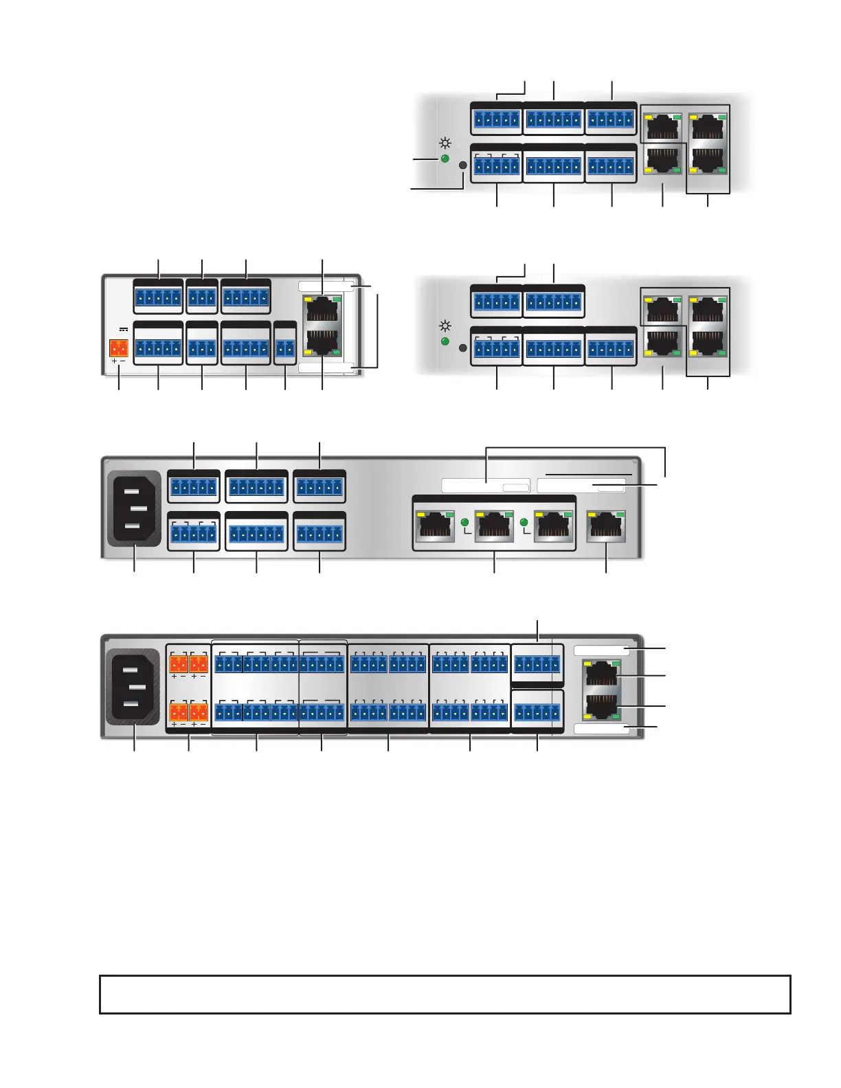 Figure 17. IPCP Pro Q xi Rack Mount Control Processors (with AV LAN) Rear Panels