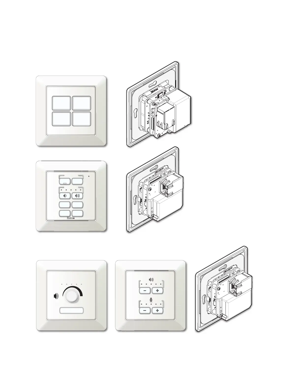 The NBP VC1 EU features a soft backlit button and a rotary knob. All EU fit most standard one-gang European