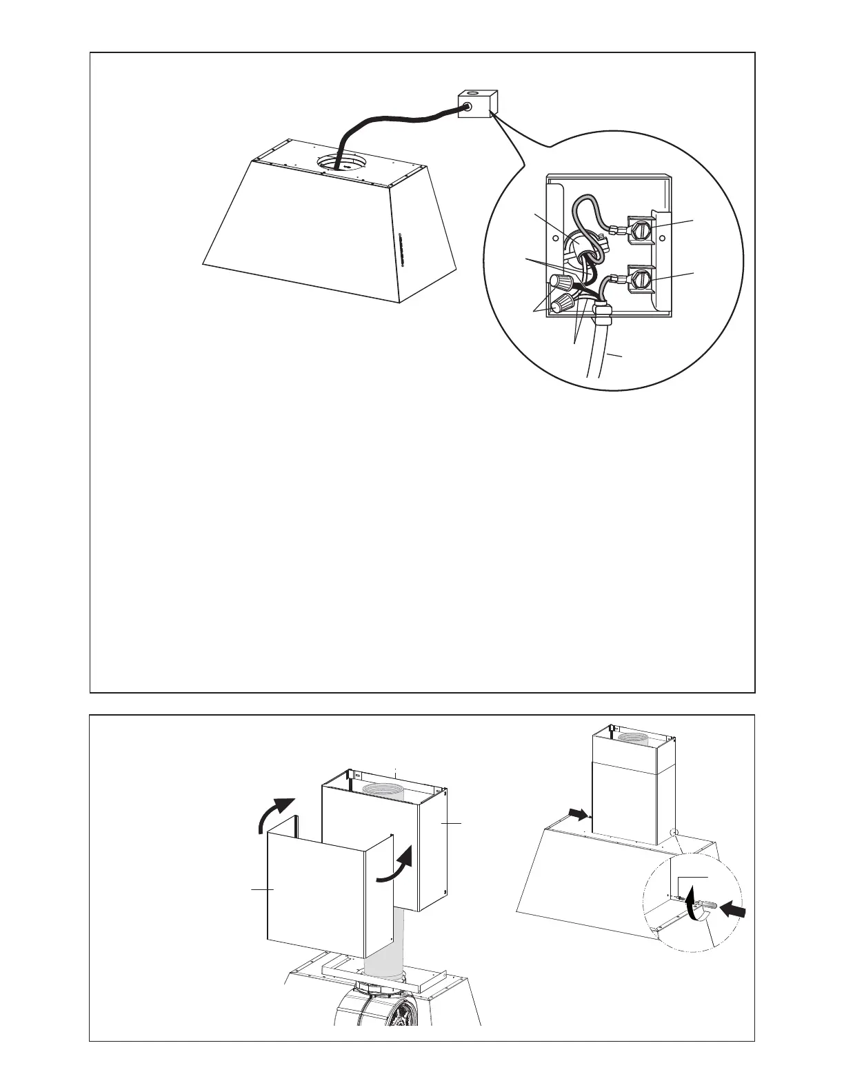 G. Green ground wire from Range hood power supply cable connected to green ground screw.