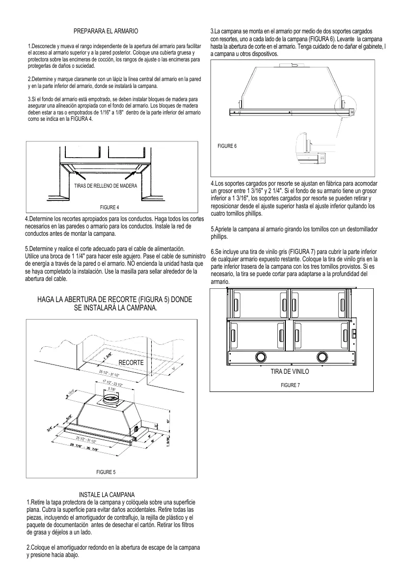 3.La campana se monta en el armario por medio de dos soportes cargados