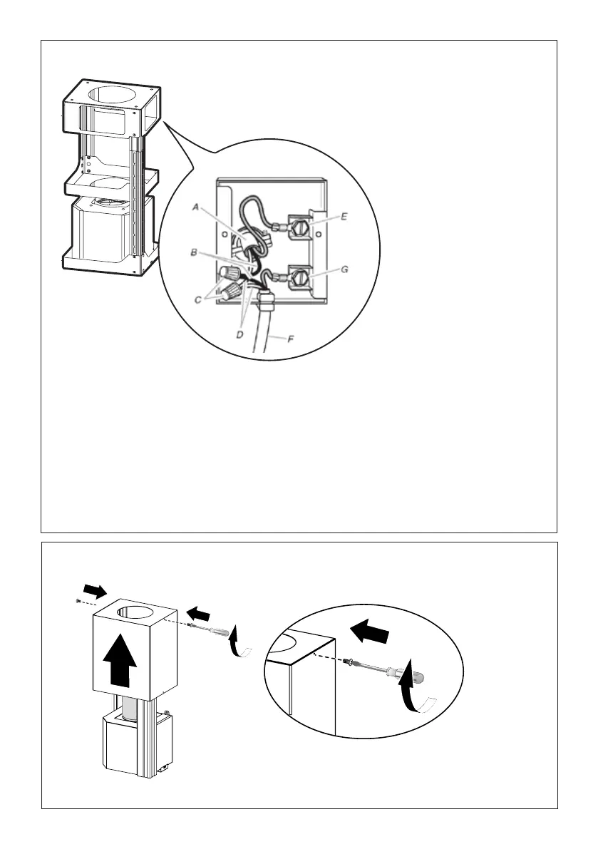 Positiontheupperchimneysectionandxtheupperparttotheframeusingthe2screwsremovedpreviously.