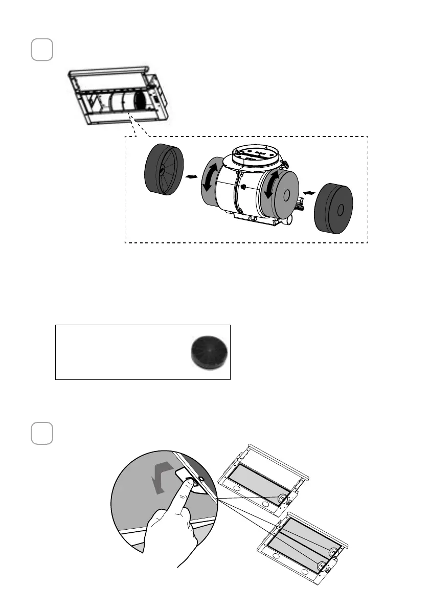 Fixez chaque filtre à charbon à la grille noire de chaque côté du ventilateur.