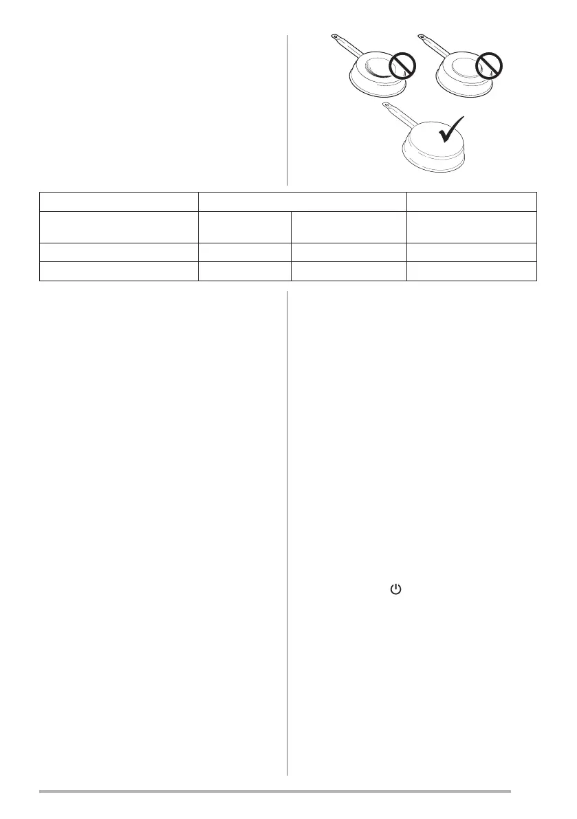 Kochzone Topf-/Pfannenboden Hinweise