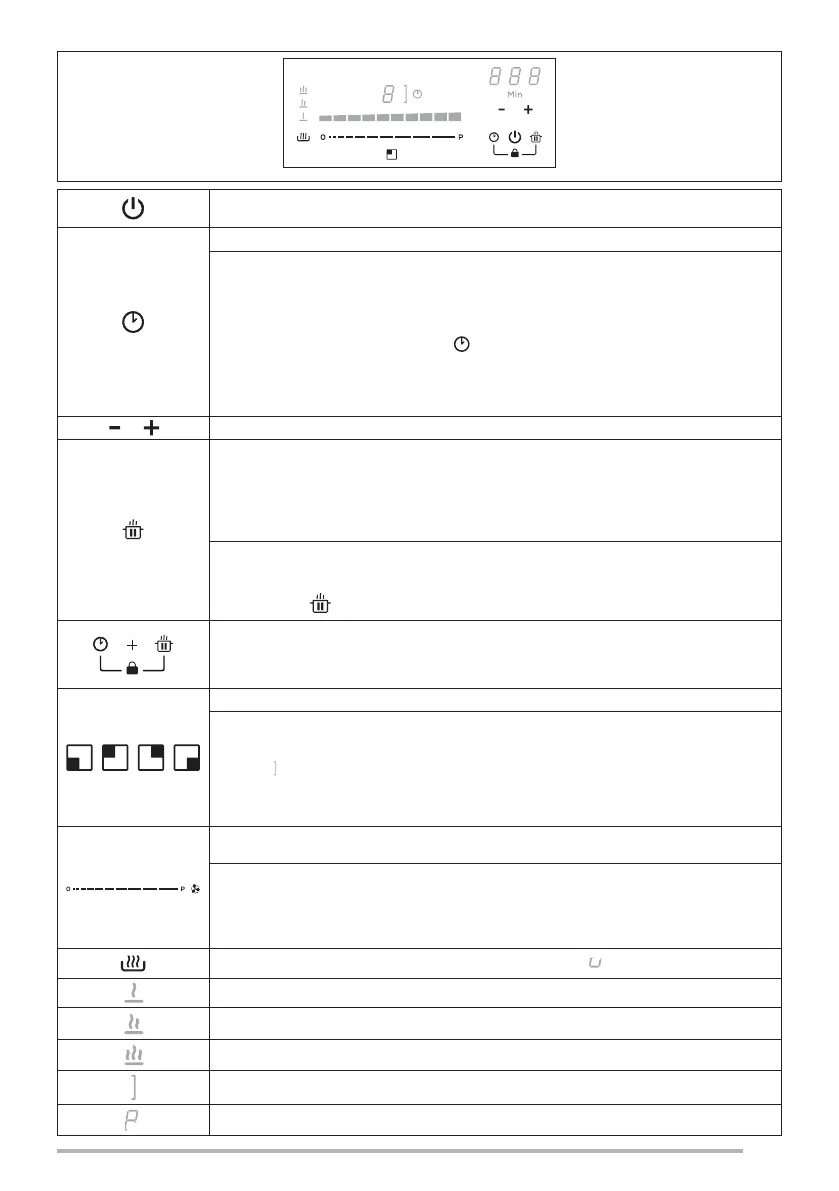 cuisson, et de ramener la puissance de cuisson à zéro. Appuyez pour activer, appuyez à