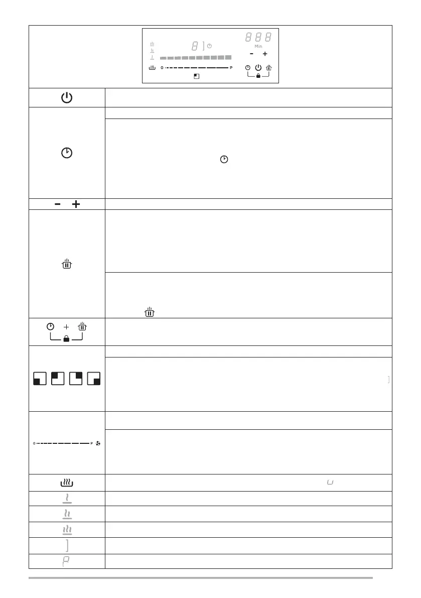 fa, llevando la potencia de cocción a cero. Pulse para activar, pulse de nuevo