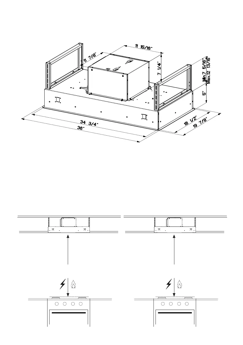 MIN. 35" D’ÉCART (ÉLECTRIQUE/AU GAZ) MAX. 72" D’ÉCART (ÉLECTRIQUE/AU GAZ)