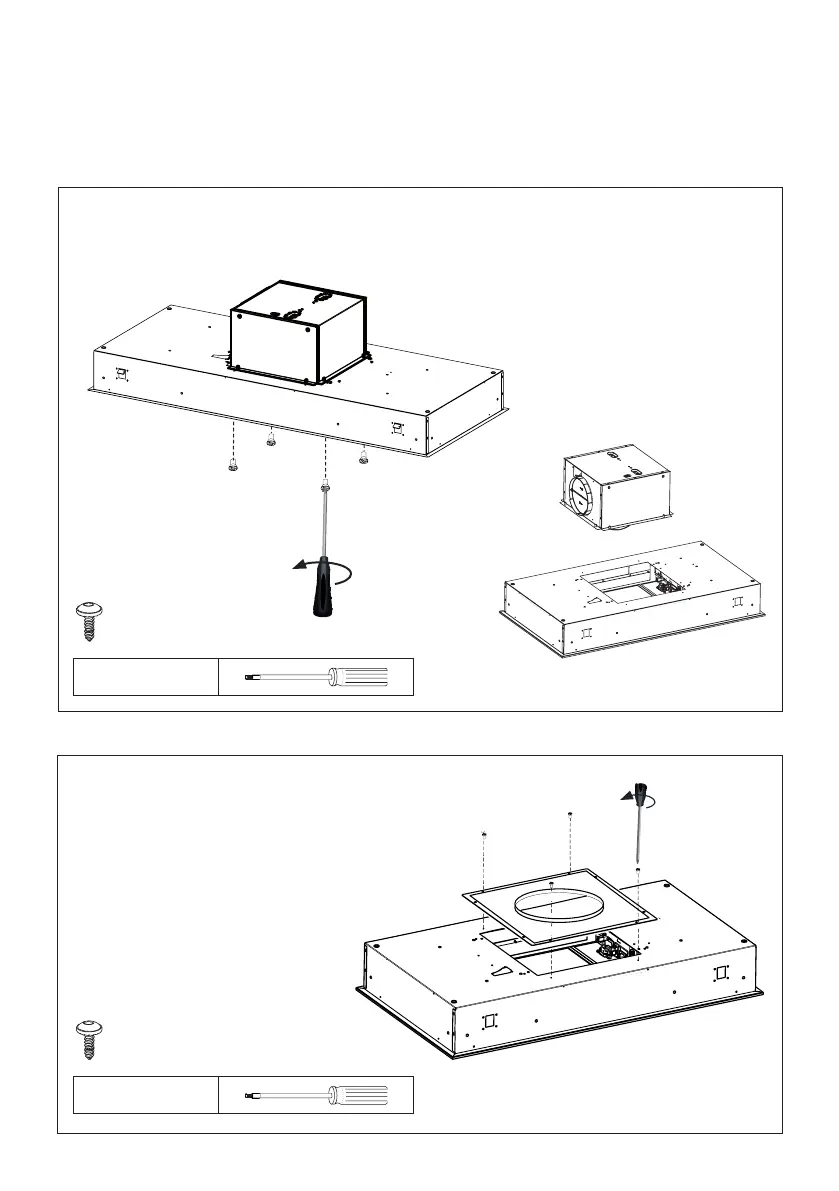 Dévissez les 4 vis pour détacher le carter de ventilateur du bâti de la hotte. Conservez les vis.