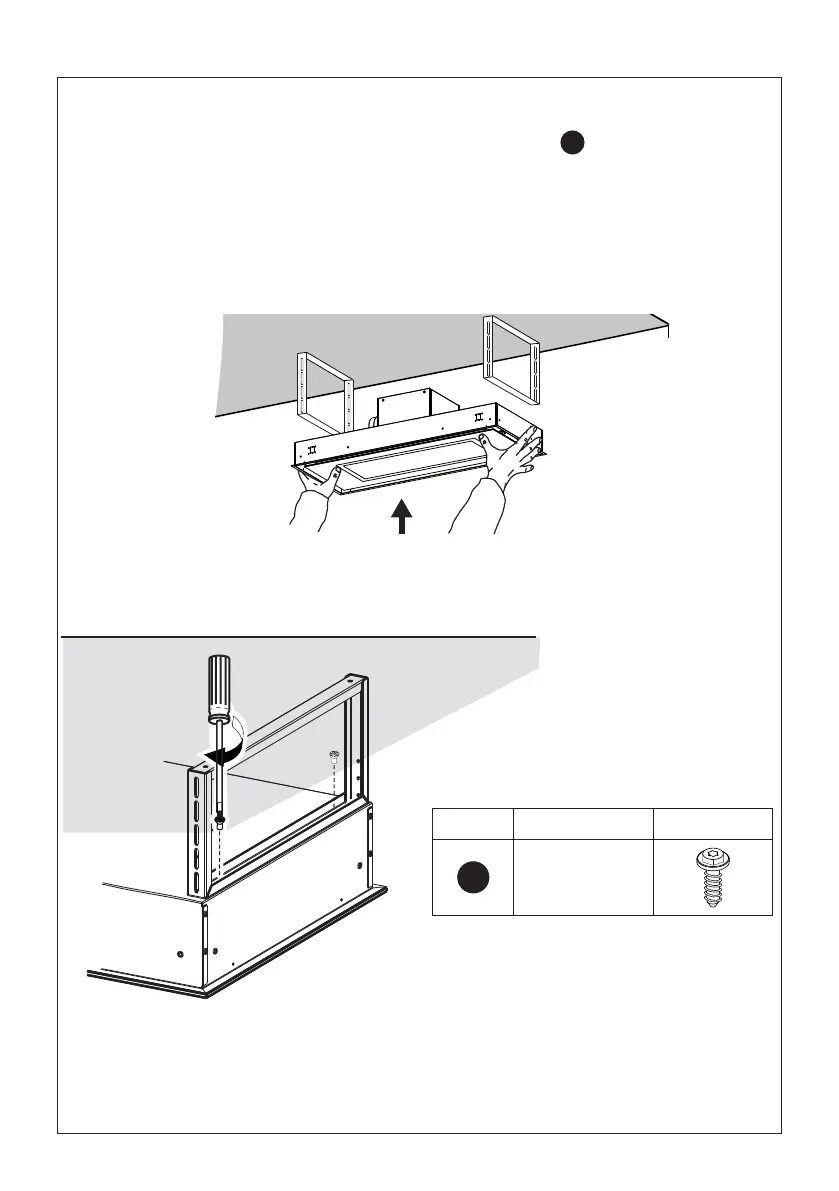 Fixez le bâti de la hotte aux brides de xation au plafond. Utilisez les 4 vis