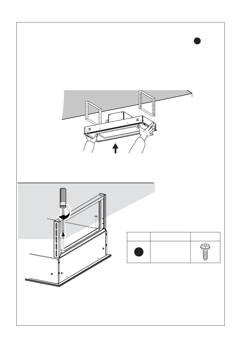 Fije el cuerpo de la campana a los soportes de techo de la campana utilizando los 4 tornillos