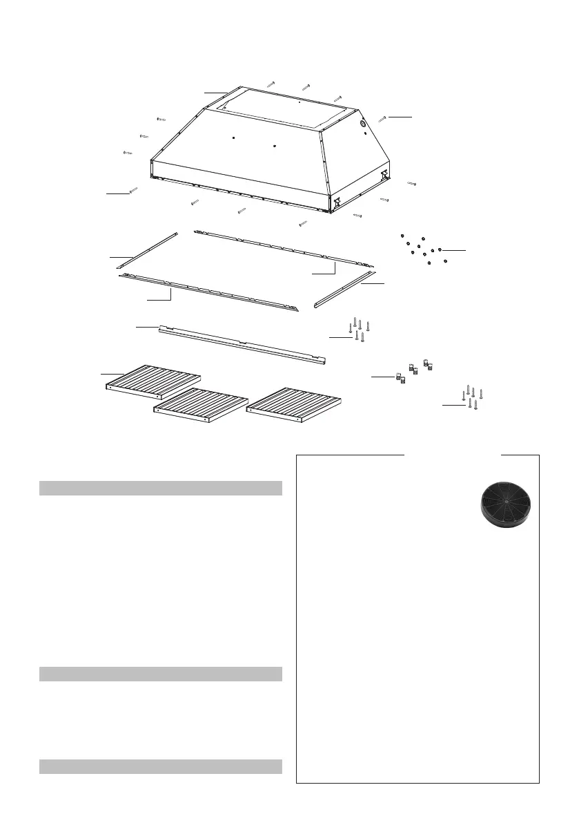 1 1 Bâti de la hotte avec : Commandes, Éclairage,