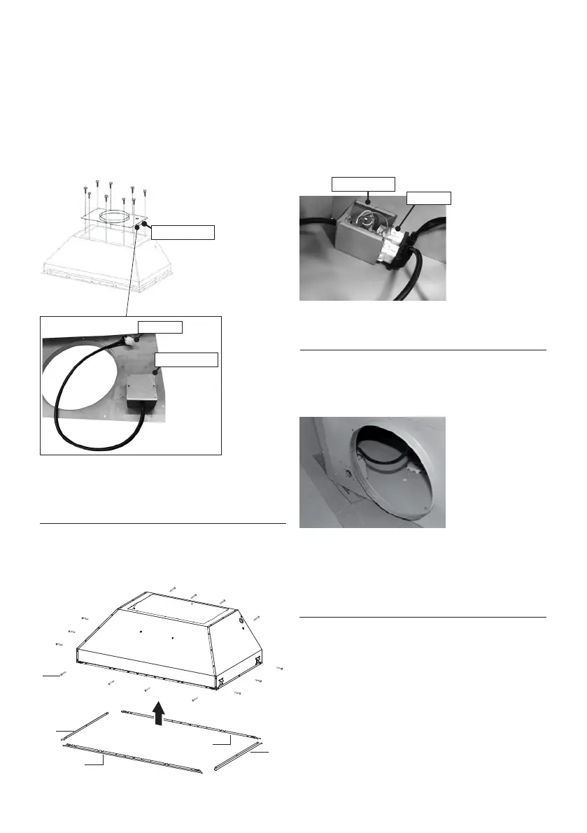 blower kit, on top of the rangehood. Use 9 screws supplied with