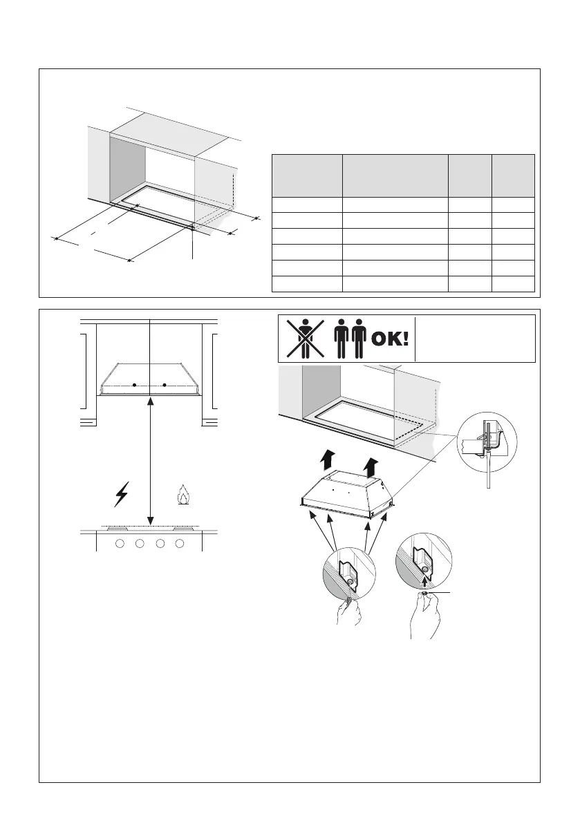 Install the Insert Hood through the cabinet cutout into the cabinet opening that has a minimum