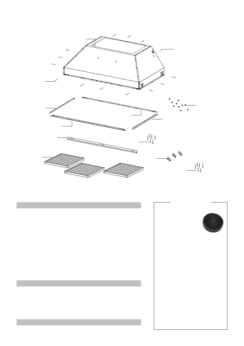 1 1 Bâti de la hotte avec : Commandes, Éclairage,