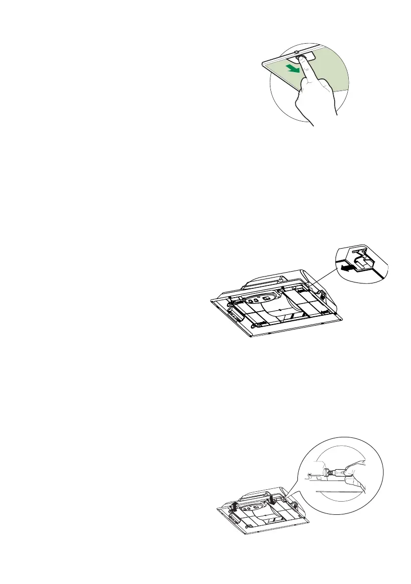 6. Replace the bottom of the rangehood and secure by pushing in the grey tabs (A