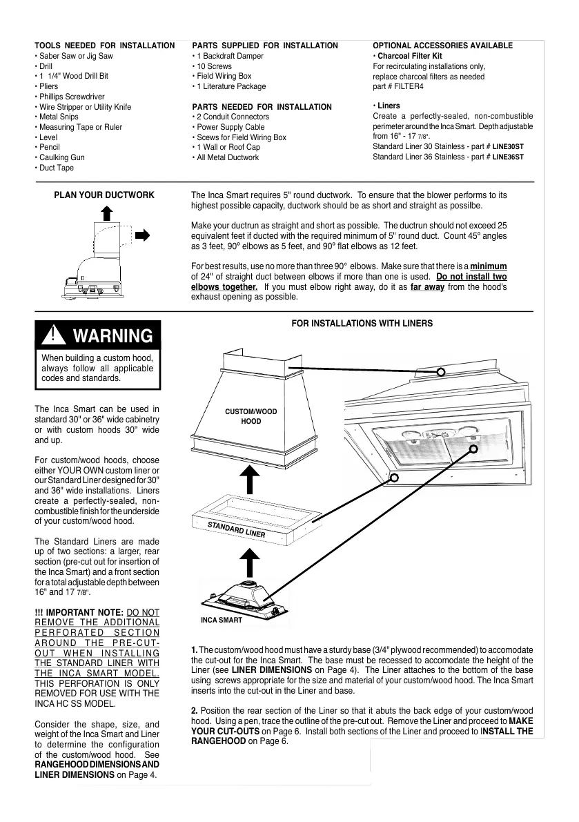 using screws appropriate for the size and material of your custom/wood hood. The Inca Smart
