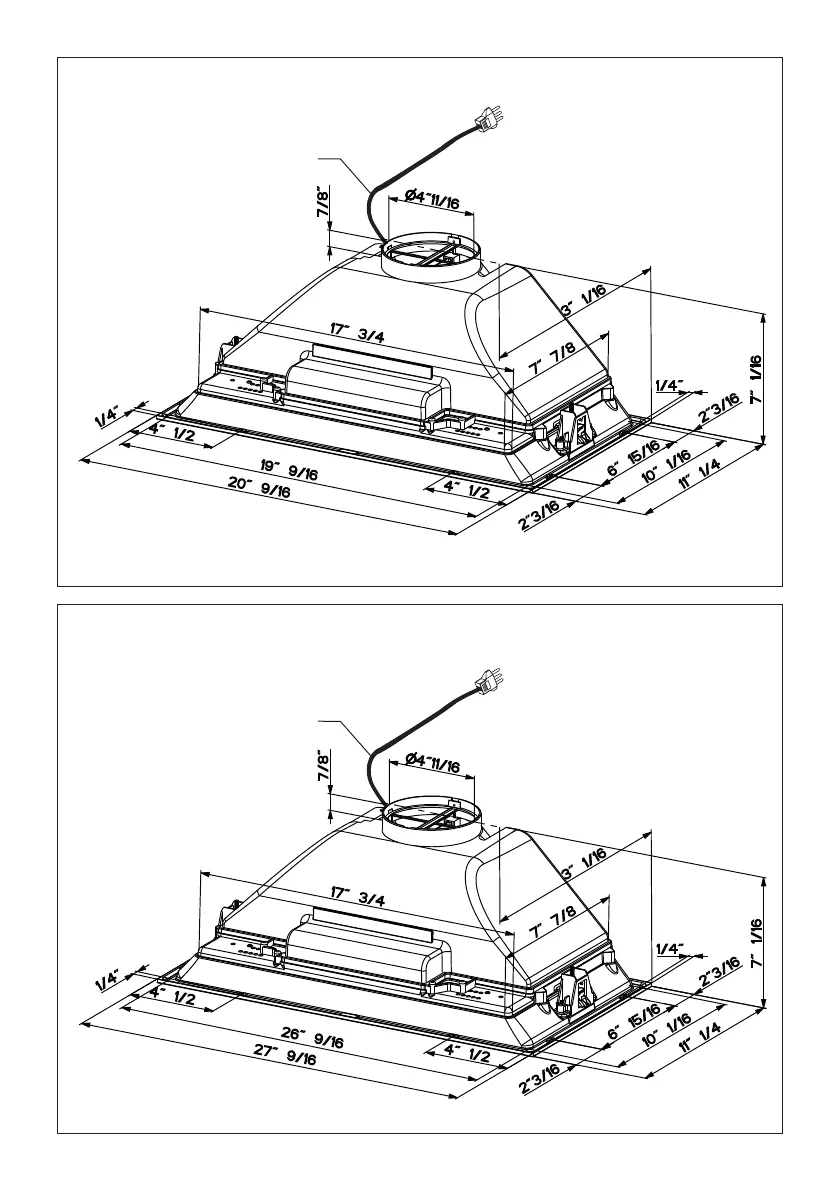 DIMENSIONES DE LA CAMPANA EXTRACTORA 21"