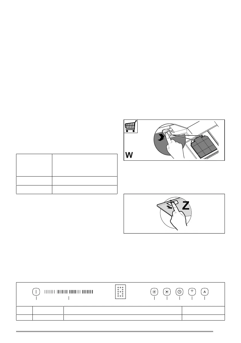Short Hold the key pressed to turn the hood on/off at the first speed. The display shows 1.